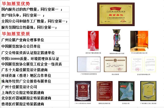 廣州畢加展覽服務(wù)有限公司成立于2008年,注冊資金600萬。專注于展館展廳設(shè)計施工、主場策劃執(zhí)行、展臺設(shè)計搭建為展覽營銷一體化工程的專業(yè)總承包服務(wù)企業(yè)。為服務(wù)于企業(yè)營銷多元化,畢加先后成立了品牌策劃設(shè)計、活動策劃執(zhí)行、互動多媒體開發(fā)、宣傳片制作、管理軟件研發(fā)、網(wǎng)絡(luò)推廣策劃等各專業(yè)團隊。在管理上統(tǒng)一運用展覽工程ERP系統(tǒng)管理,在國內(nèi):廣州、北京、上海、深圳、長沙、成都、重慶、武漢、南昌、內(nèi)蒙古、德國、新加坡、緬甸等地均設(shè)有分公司和制作工廠,總面積達10萬多平方米。畢加成功為吳太集團、哈藥集團、匯仁集團、貝克聯(lián)合制藥、修正藥業(yè)、大紅鷹、華源醫(yī)藥等大型醫(yī)藥品牌企業(yè)專業(yè)打造了實效的營銷型展臺,并獲得一致好評。