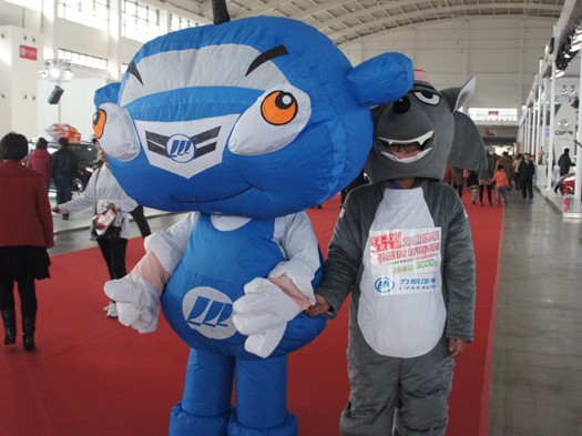 在展會的人群中,不時會發(fā)現(xiàn)各種卡通人偶在身邊出現(xiàn),他們有的是耳熟能詳?shù)慕巧合惭蜓?、灰太狼、機(jī)器貓、Hello kitty……而有的是一些品牌的吉祥物。仔細(xì)看這些人偶中,有的可愛著,而有的貓不像貓、熊不像熊,好比山寨產(chǎn)品,雷人程度非同一般,但也因此深受觀展者關(guān)注。