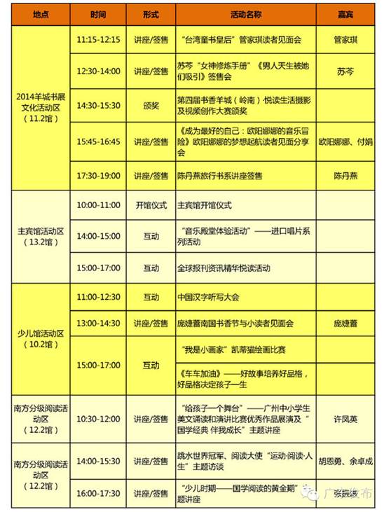 2014年廣州南國(guó)書(shū)香節(jié)7天活動(dòng)時(shí)間表