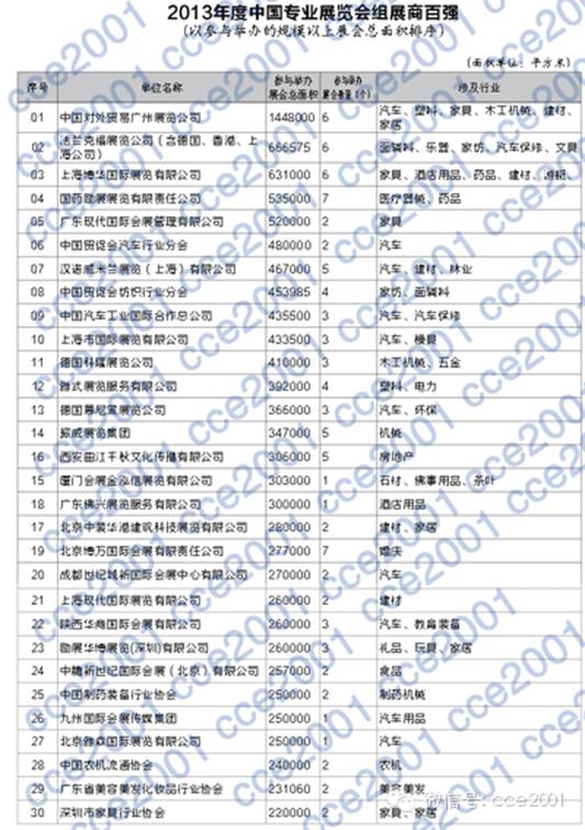 2013年度中國(guó)專業(yè)展覽會(huì)組展商百?gòu)?qiáng)名單
