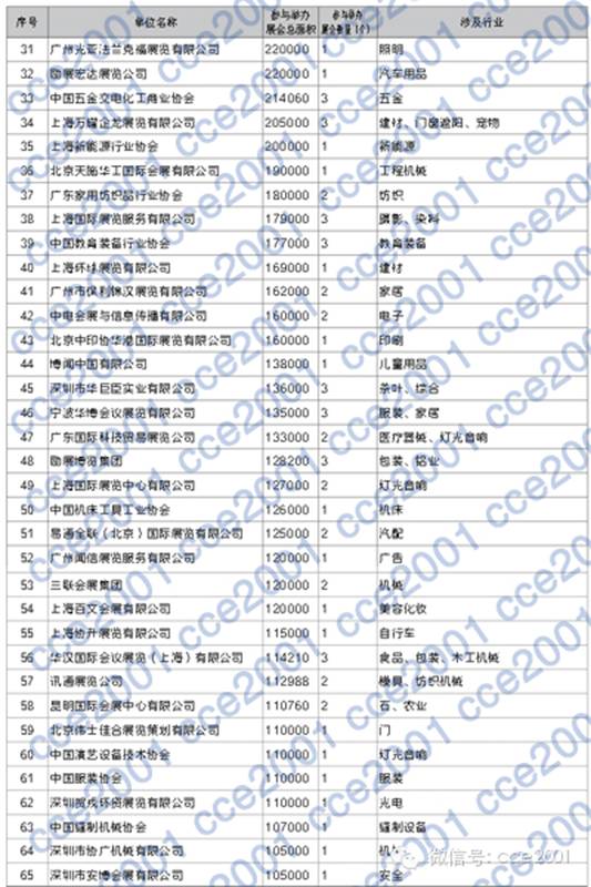 e) 附件中的百?gòu)?qiáng)名單是按照各單位2013年度參與舉辦的規(guī)模以上展會(huì)總面積順序排列,同時(shí)公布了2013年度參與主辦的規(guī)模以上展會(huì)數(shù)量和涉及行業(yè);由于不同行業(yè)之間存在很大區(qū)別,因此該排序只是一個(gè)參考,不能全面反映各單位之間的實(shí)力差距;?