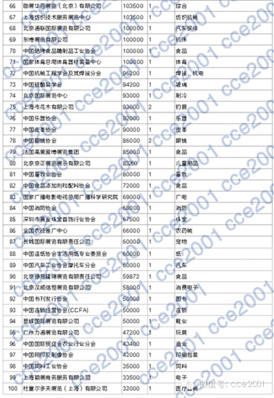 a) 附件中的百?gòu)?qiáng)名單是依據(jù)《2013年度中國(guó)規(guī)模以上展覽會(huì)動(dòng)態(tài)數(shù)據(jù)庫(kù)》的有關(guān)數(shù)據(jù)統(tǒng)計(jì)得出;參與主辦的規(guī)模以上展會(huì)總面積是能否進(jìn)入百?gòu)?qiáng)的重要指標(biāo),此外,除汽車(chē)、家居、建材、汽配、汽車(chē)用品、五金、廣告、機(jī)床、教學(xué)儀器、禮品、木工機(jī)械、印刷、石材等13個(gè)行業(yè)保留2個(gè)及以上展會(huì)主辦者入選外,其他只舉辦單一展會(huì)的組展商,原則上只保留所辦展會(huì)同行業(yè)面積排名第一者;?