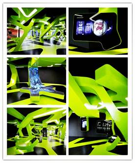 4、展廳科技設(shè)計。通過科幻式的空間布置、高科技的聲光控制以及金屬、玻璃等裝飾材料的運用,使人聯(lián)想到展示對象的科技含量??萍际降膭?chuàng)意設(shè)計對于一些高新技術(shù)行業(yè)的產(chǎn)品展廳設(shè)計更是不可缺少的元素。