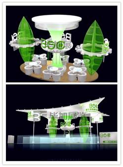 環(huán)保是近近幾年比較流行的話題,綠色成為了時尚新的的代名詞,隨著環(huán)境保護意識的增長,人們向往自然,喝天然飲料,用自然材料,渴望住在天然綠色環(huán)境中,這對世界各國展覽設(shè)計理念影響很大,在展臺中創(chuàng)造自然的舒適氣氛,強調(diào)自然色彩和天然材料的應(yīng)用,采用許多民間藝術(shù)手法和風(fēng)格。在此基礎(chǔ)上設(shè)計師們不斷在“回歸自然”上下功夫,創(chuàng)造新的肌理效果,運用具象的抽象的設(shè)計手法來使人們聯(lián)想自然。目的是讓人們在喧囂的都市里回歸心靈的那一份寧靜。