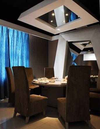 在對面的利用中,使用條形或整幅的鏡面玻璃形成虛中見實(shí)的視錯(cuò)覺效果,是展示設(shè)計(jì)較為常用的一種視錯(cuò)覺處理辦法。在陳列布置上巧妙的利用鏡子將有助于制造假象,在視覺上擴(kuò)大空間范圍。此外鏡子還能產(chǎn)生一種虛幻的對稱效果。