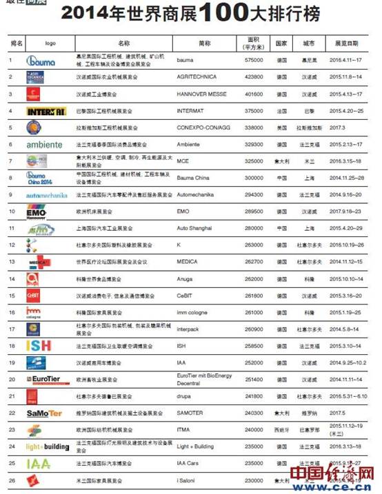 2014年世界商展百?gòu)?qiáng)排行,不服來(lái)辯
