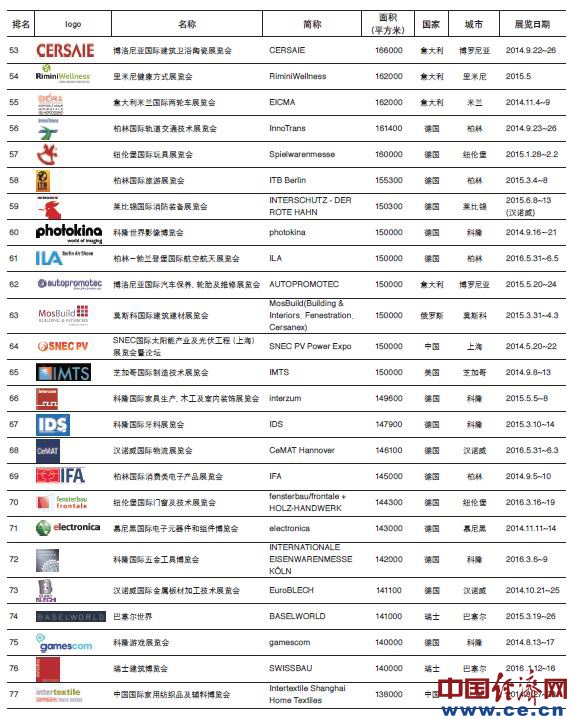 4. 排名采用2013年12月31日前最近一屆展覽的數(shù)據(jù)。