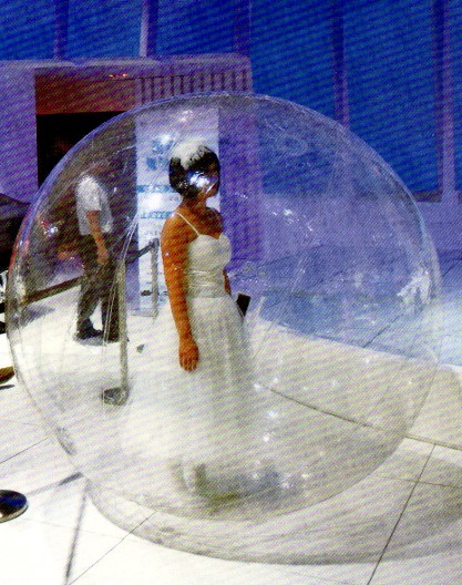 隨著音樂響起,裝著“天使”的泡泡緩緩步入舞臺中央,立即呈現(xiàn)出一幅美麗的畫面,引起現(xiàn)場陣陣掌聲,展臺魅力瞬時提升。