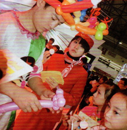展臺人員的可愛小丑扮相吸引了小孩子的眼球。小丑能應孩子的要求將手中的氣球捏成各種形狀,小孩子驚奇于小丑的“魔法”,久久不愿離開,展臺被這群可愛的孩子圍得水泄不通,吸引孩子的注意力是提升展臺人氣的一大法寶。