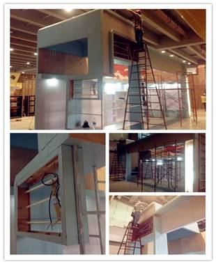 實踐中往往是先把展臺結(jié)構(gòu)布置好以后再安排展品入場的,現(xiàn)場的工作人員一定要注意為客戶服務(wù),配合其展品進場。