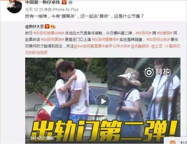 卓偉昨天繼續(xù)爆出白百何出軌第二彈。。白百何太會玩,與此男子當(dāng)街揉臀調(diào)情,這次換上演“摸臀殺”。
