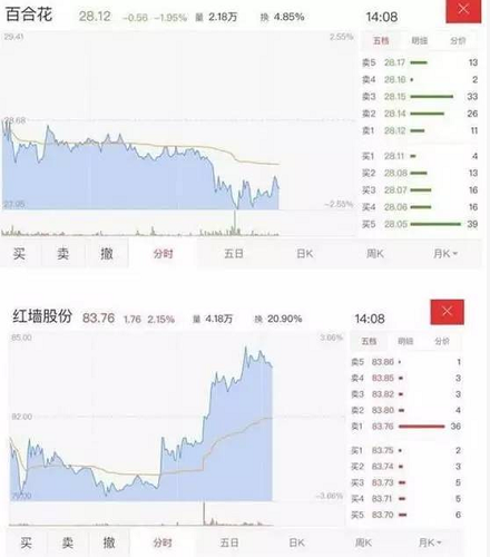 9.A股股民真會玩!“出軌概念股”紅墻股份放量走高,百合花、夢百合卻持續(xù)走低。