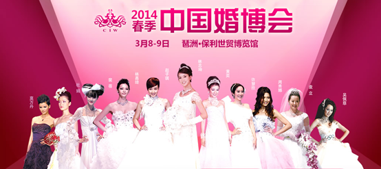 中國婚博會——全球超大規(guī)模、世界品牌結(jié)婚展。2014春季中國婚博會將于3月8日-3月9日再次在琶洲保利世貿(mào)博覽館隆重召開!屆時,來自英、美、法、意、日、韓等2500個國際國內(nèi)頂級品牌、30萬款結(jié)婚新品,送現(xiàn)金、送家電……盛大特惠廣州結(jié)婚新人,讓您享受高性價比一站式結(jié)婚采購服務(wù)、輕松籌備您的品質(zhì)婚禮。
