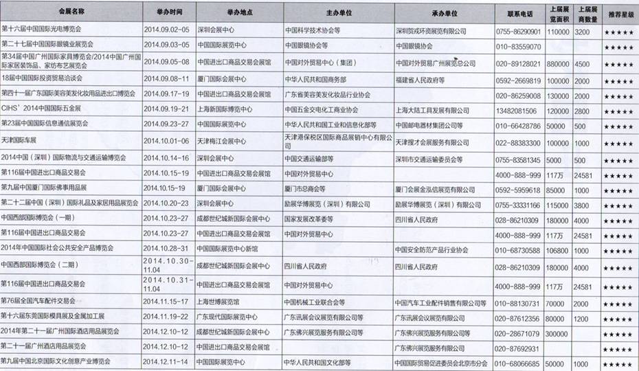2014年9月-12月推薦重點(diǎn)展會時(shí)間排期表
