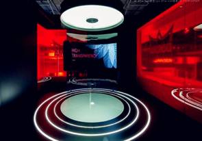 展覽空間對燈光照明的要求可以概括為一個字,就是“亮”。但不要以為“亮”就等于大量的強光照射。好的照明設計要與功能、顧客的視覺適應度以及創(chuàng)意掛鉤,“亮”分成全光、局部照亮、有層次地漸亮等。通常來說,采用局部照明是展覽設計照明的最佳方案。因為如果是寬敞高大的展廳,容易讓觀眾產(chǎn)生空曠的感覺,而小而雜亂的格子展攤,顧客則難免有視線找不到重點的感覺。若關掉頂棚吊燈,采用局部射燈照明,再加之黑色的燈具和黑色的結構框架,這樣與頂棚之間形成一種視覺屏蔽,就能產(chǎn)生“空間消失”的效果,讓顧客的注意力能夠放在射燈所打在的展覽品身上。在人的心理暗示中,寬敞通常與明亮掛鉤,而灰暗則通常是狹小的,這說明亮度與空間之間是有烘托關系的。如若設計師能有逆向思維,將上述關系在相反的方向加以改變,則將大空間調暗、小空間照亮,則必定能起到不一樣的效果,即大空間有縮小了的感覺,反之小空間會有增大之感。展覽作品擺掛的小空間的亮度增大,就能把觀眾的注意力都轉到作品之上。