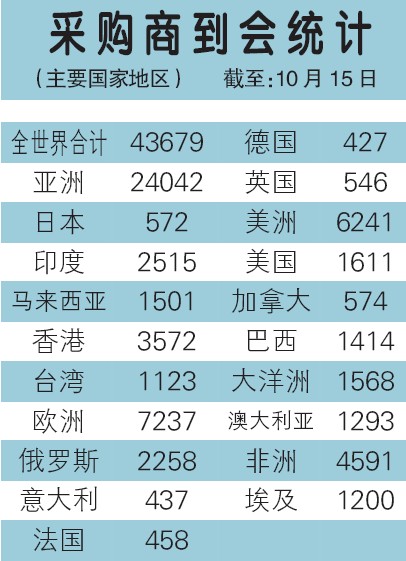截止15日,第116屆廣交會(huì)廣交會(huì)官網(wǎng)統(tǒng)計(jì),當(dāng)天采購(gòu)商到會(huì)統(tǒng)計(jì)達(dá)43679人次。
