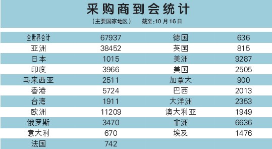 截止16日,第116屆廣交會(huì)廣交會(huì)官網(wǎng)統(tǒng)計(jì),當(dāng)天采購(gòu)商到會(huì)統(tǒng)計(jì)達(dá)67937人次。