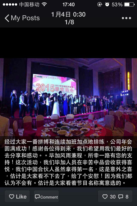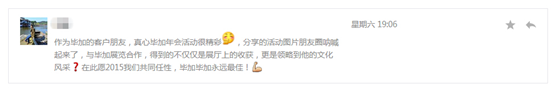 2014畢加展覽年會(huì)暨2015聯(lián)歡晚會(huì)雖然結(jié)束了,但是朋友圈依然熱火朝天,院校、供應(yīng)商、工廠等朋友們都給了畢加10086”個(gè)贊,紛紛給畢加人發(fā)來賀電,給畢加公司送來祝福。畢加人在年會(huì)上精彩的表現(xiàn)讓人眼前一亮,作為一家展覽行業(yè)的標(biāo)桿企業(yè),來年的我們一定會(huì)以實(shí)際行動(dòng)履行我們的承諾,給予客戶更好的設(shè)計(jì)與服務(wù)。這次年會(huì),畢加角度上講,這就像一個(gè)強(qiáng)力馬達(dá),不斷驅(qū)動(dòng)著我們往目標(biāo)前進(jìn)。柏拉圖說:漫無目的的生活就像出海航行而沒有指南針航海沒有指南針,就是一艘船在海上航行,沒方向,那有可能遇上大風(fēng)浪,暴雨,暗礁,隨時(shí)沉沒死亡。一條條的評(píng)價(jià)聚集在一起,讓畢加展覽這艘豪輪有了一個(gè)風(fēng)向標(biāo),始終瞧著目標(biāo)前進(jìn)。