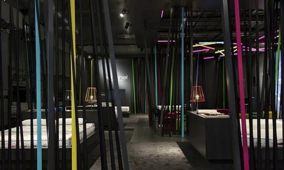 光的強(qiáng)弱對人的情緒影響是不同的,展示臥房家具時宜采用柔和光,讓人覺得溫馨安寧;展示客廳家具時,多采用明亮光,給人舒適愉快感。展示不同材質(zhì)的家具宜選用相應(yīng)色溫的光源,一般來說,玻璃、金屬、石材家具宜選用高光色(冷感),以體現(xiàn)質(zhì)堅的特性;而木質(zhì)、布藝家具用低光色(暖感)的光源照射更能增強(qiáng)柔和感。