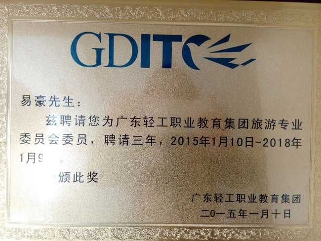 畢加成為廣東輕工旅游專業(yè)第一屆會員單位