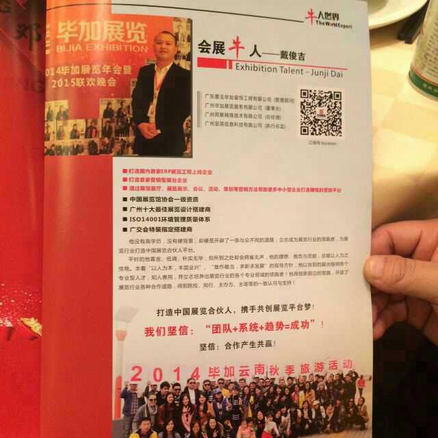 同時(shí),我司董事長(zhǎng)兼總經(jīng)理戴俊吉先生很榮幸成為《牛人世界》雜志中的會(huì)展牛人,這一方面證明了畢加展覽這幾年的飛速發(fā)展得到了社會(huì)各界的認(rèn)可,另一方面也像大家表達(dá)了我們的理想和愿望,就像雜志上所寫,畢加人一直渴望和倡導(dǎo)的是“打造中國(guó)展覽合伙人,攜手共創(chuàng)展覽平臺(tái)夢(mèng)”,這驅(qū)使和鞭撻著我們不斷學(xué)習(xí),不斷改進(jìn),不斷創(chuàng)新,以提供給客戶最好的服務(wù),我們的發(fā)展目標(biāo)史“做國(guó)內(nèi)展覽營(yíng)銷一體化工程的首選品牌。”