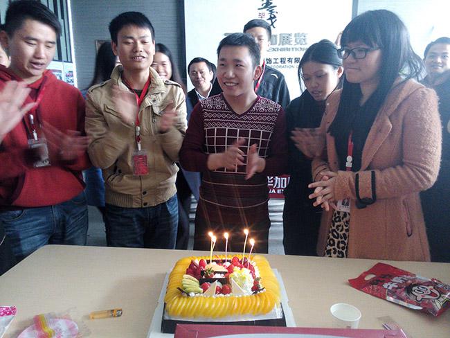 每月一次的生日會拉近的不僅僅是部門間同事的距離,更多的是增加公司凝聚力,為工作添加熱情,添加活力。以創(chuàng)新的設計理念設計好方案,以精確的數據做好施工圖,以零失誤的施工搭建展臺......相信畢加人在充滿激情的環(huán)境下能夠越做越好,將11年的畢加文化傳達到我們的服務上,為客戶在展會上營造氣氛,創(chuàng)造銷售!