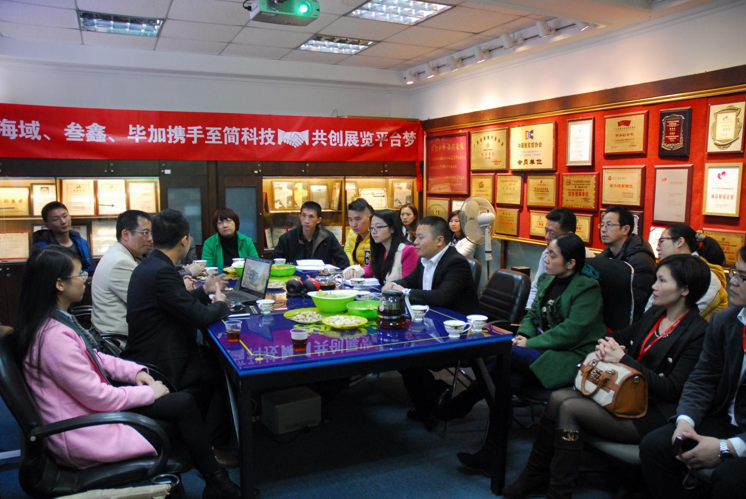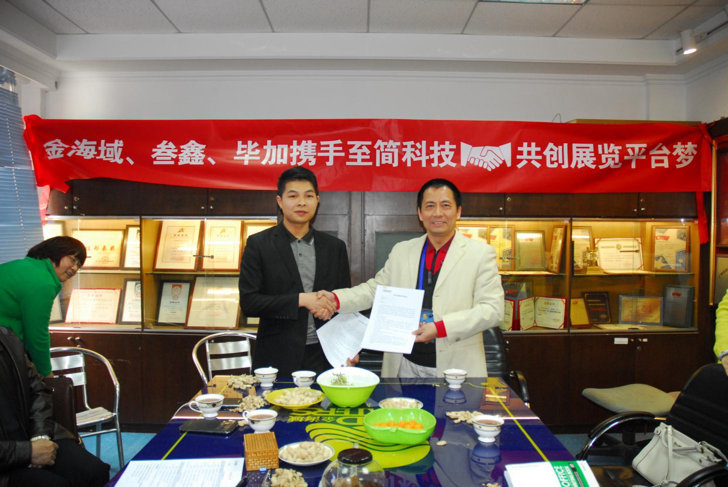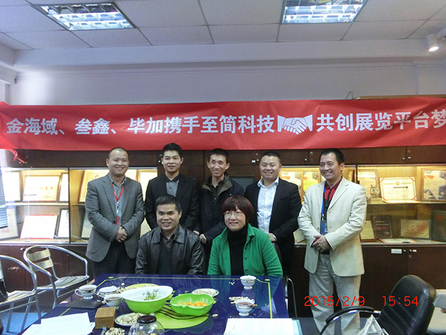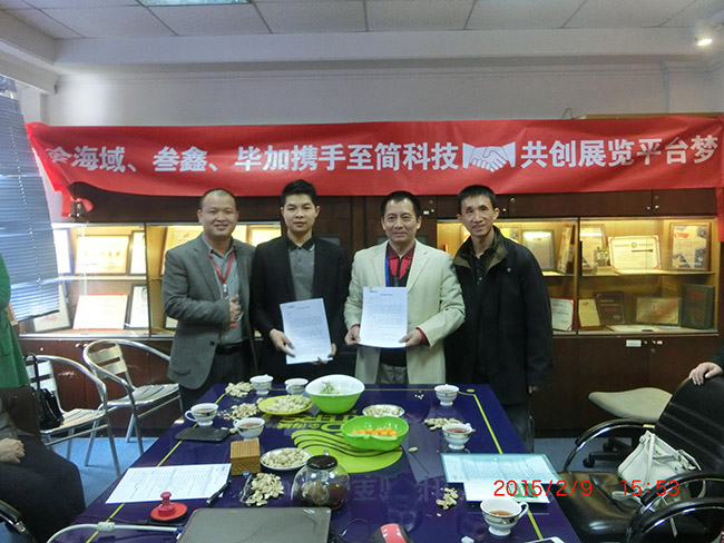 2015年2月9號,注定是個歷史性的時刻,自94年成立至今有著20年的品牌歷史的金海域傳播有限公司與叁鑫、畢加為著一個共同的理想,在至簡科技牽頭下,在廣東會展組展企業(yè)協(xié)會會長劉松萍與廣州市經(jīng)濟貿(mào)易委員會會展中心主任李曉明及眾多企業(yè)高管的見證下,在金海域本部簽訂了合作協(xié)議。這意味著團隊合作,在展覽這個新興行業(yè)將全面鋪開!標(biāo)志著四方建立了穩(wěn)固的戰(zhàn)略合作伙伴關(guān)系,為下一步的系統(tǒng)主導(dǎo),資源共享打下堅實基礎(chǔ),邁出重要的一步!