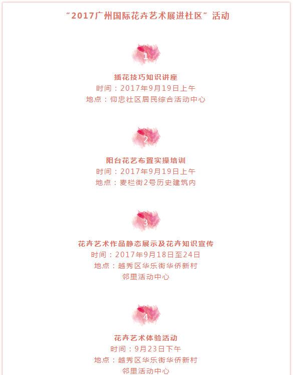 廣州市民花卉藝術(shù)作品展覽;國際花藝名師拜師會;最美陽臺、最美花店評選;