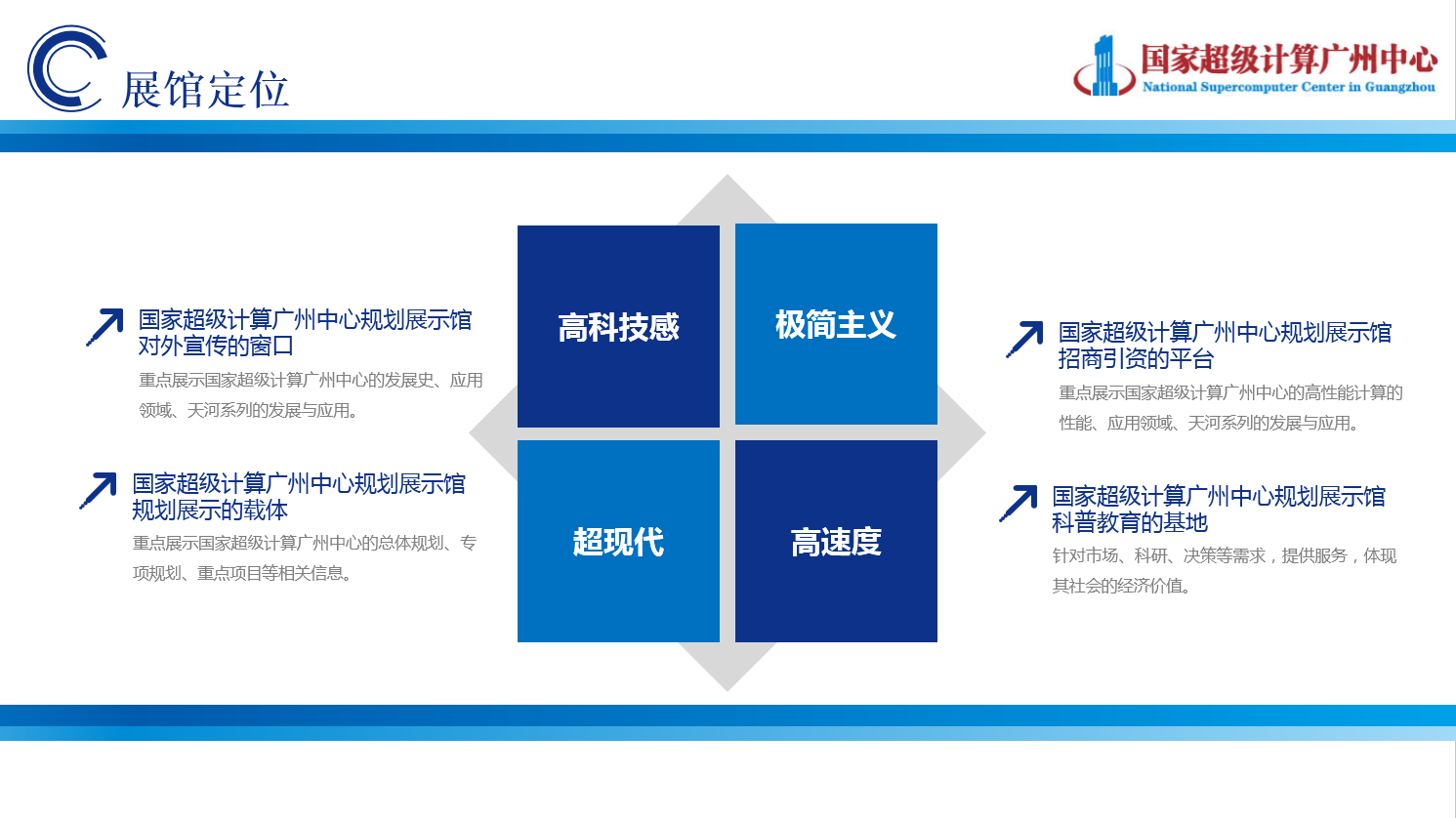 項目介紹:國家超級計算機——智能科技展廳設(shè)計裝修,本案設(shè)計中,秉承超科技、超現(xiàn)代的理念,力圖將超級計算機有機的融合到展館中,讓專業(yè)的行業(yè)信息通過體驗互動式的方式傳達給參觀者,達到一種科普教育的目的,讓參觀者真正感受到速度改變生活,超算改變未來的理念。同時根據(jù)展館空間需求,在設(shè)計上滿足了各展區(qū)可更替性要求。我們以F小子first(第一),fast(快),future(未來)為故事主人公來引領(lǐng)觀眾體驗“速度改變生活,超算改變未來”的奇幻旅程,從而使觀者在移步換景中,仿佛穿梭在數(shù)字化帶來的時光隧道中。