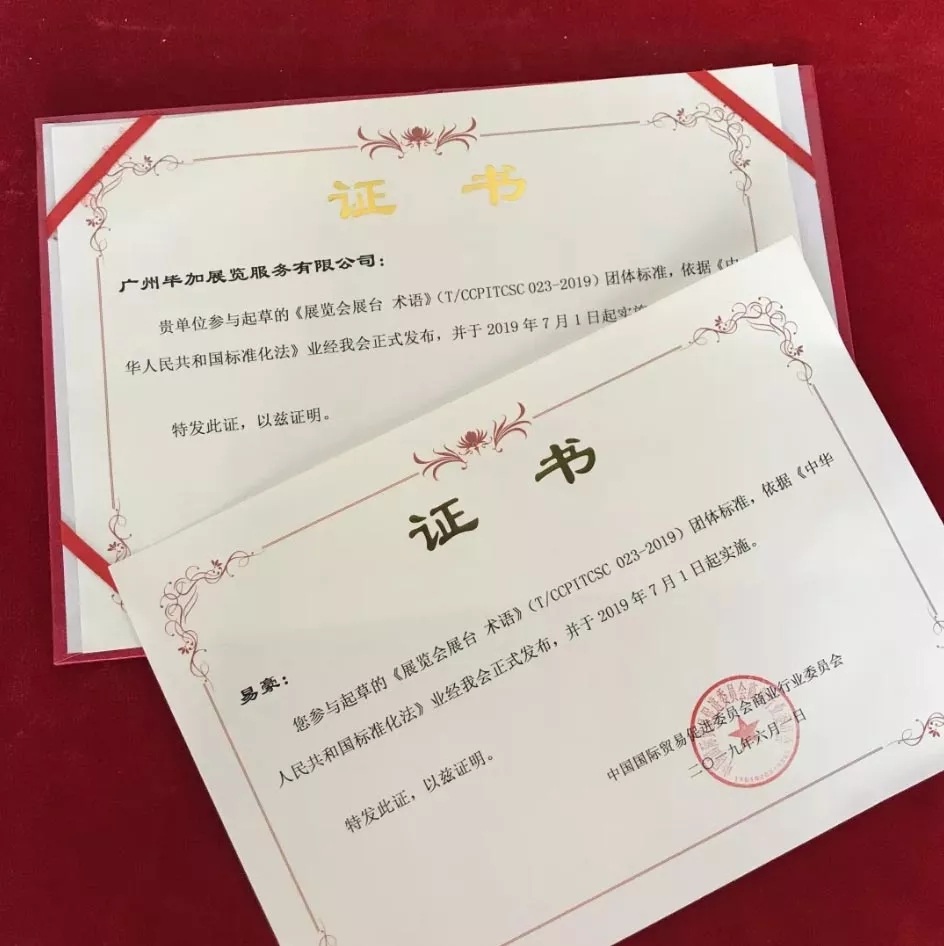 貴單位參與起草《展覽會(huì)展臺(tái) 術(shù)語(yǔ)》(T/CCPILCSC 023-2019)團(tuán)體標(biāo)準(zhǔn)。依據(jù)《中華人民共和國(guó)標(biāo)準(zhǔn)化法》業(yè)經(jīng)我會(huì)正式發(fā)布,并于2019年7月1日起實(shí)施。