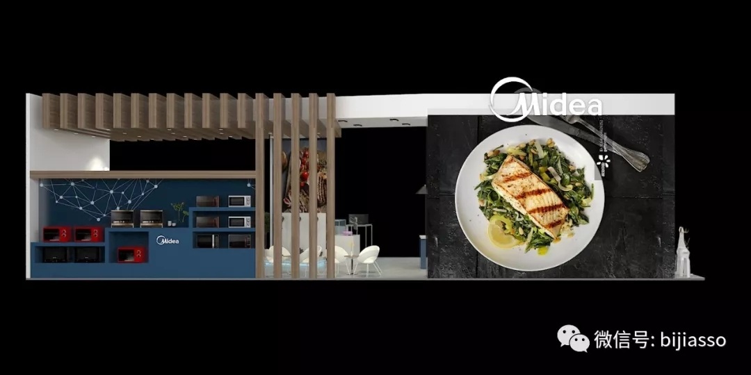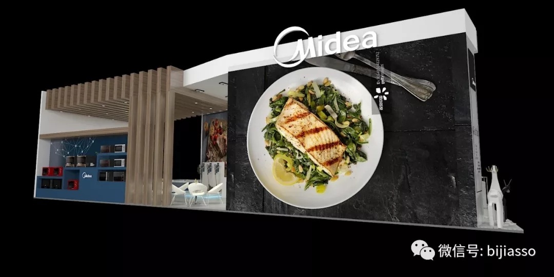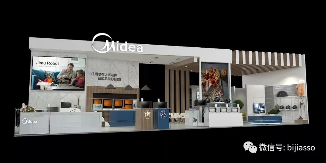 明星產(chǎn)品采用階梯式的純白烤漆展臺(tái)陳列讓黑色面的產(chǎn)品凸顯,后面豎立的通光玻璃映照出產(chǎn)品參數(shù)設(shè)計(jì)更顯科技感。展臺(tái)前端放置落地發(fā)光LOGO讓攝影者更好的把美的植入各大的手機(jī)朋友圈里,從而達(dá)到營(yíng)銷(xiāo)傳播的目的。