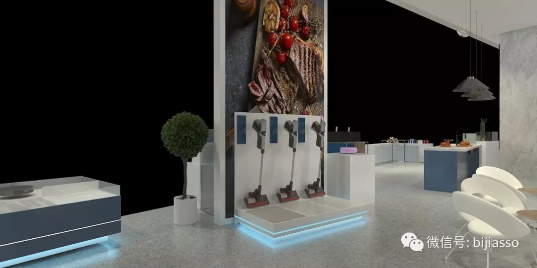 位于展廳較后面設(shè)計(jì)師為了參觀者能有展示感,從而設(shè)計(jì)了產(chǎn)品新品展示的體驗(yàn)方式。設(shè)計(jì)師豐富地利用每一個(gè)空間,把美的產(chǎn)品以展示墻展示,星空?qǐng)D做背景,形成以美的為主的星空藍(lán)圖。美的就是生活,生活有它更美的。