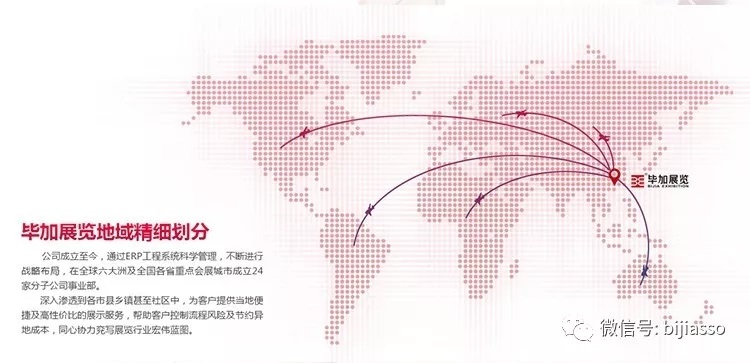 畢加展覽在國內(nèi)外設(shè)有24個分子公司及多個辦事處,業(yè)務(wù)遍及30多個國家和地區(qū),擁有10萬平方產(chǎn)業(yè)園和制作工廠,總服務(wù)30000+品牌企業(yè)。畢加展覽以企業(yè)成長發(fā)展必須的營銷和管理能力為支撐,為所有共生合伙人賦能,齊力筑造共生合伙平臺,創(chuàng)造共贏經(jīng)濟生態(tài)圈。