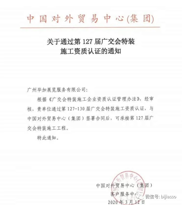 畢加展覽在疫情期間一步也沒有落下,堅持在走在展會行業(yè)之前,努力為客戶打造展示營銷展臺的決心勢不可擋的,并且畢加展覽成功獲得第127屆至130屆廣交會特裝施工資質(zhì)認(rèn)證,成為廣交會的指定搭建商之一。