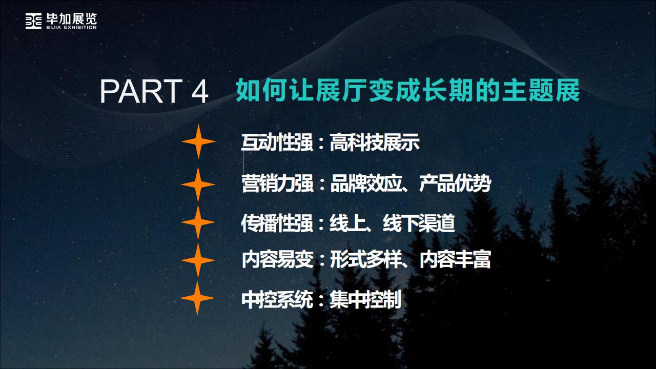打造企業(yè)自己的主題展廳,主題展廳設(shè)計(jì)怎么做?畢加展覽有限公司成立于2008年,注冊(cè)資金5000萬。12年專注于展廳博物館設(shè)計(jì)施工、展臺(tái)設(shè)計(jì)搭建、主場(chǎng)活動(dòng)運(yùn)營策劃、展具專柜定制等專業(yè)服務(wù),獲得了中國展覽館工程一級(jí)、建筑裝飾總承包貳級(jí),設(shè)計(jì)乙級(jí)等資質(zhì),是央視CCTV受邀專訪企業(yè),參與起草了中國國際促貿(mào)會(huì)《展覽會(huì)展臺(tái)術(shù)語》團(tuán)體標(biāo)準(zhǔn),并于2019年7月1日全國實(shí)施。畢加展覽在國內(nèi)外設(shè)有24個(gè)分子公司及辦事處,擁有100000㎡產(chǎn)業(yè)園和制作工廠,是一家展示營銷設(shè)計(jì)施工一體化的專業(yè)服務(wù)企業(yè)。畢加以十二年展示營銷領(lǐng)域成長的深厚基礎(chǔ),以企業(yè)成長發(fā)展必須的營銷和管理能力為支撐,為所有共生合伙人賦能,齊力筑造共生合伙平臺(tái),創(chuàng)造共贏經(jīng)濟(jì)生態(tài)圈。