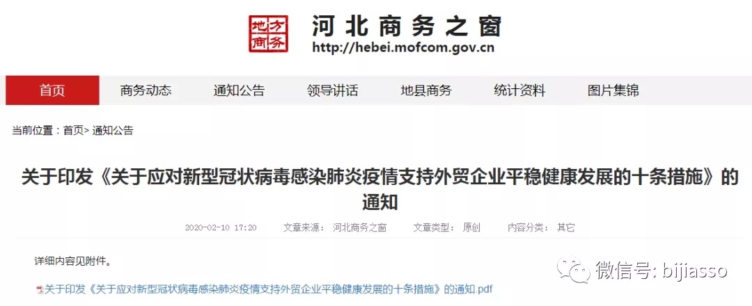 《河北省關(guān)于應(yīng)對新型冠狀病毒感染肺炎疫情支持外貿(mào)企業(yè)平穩(wěn)健康發(fā)展的十條措施》