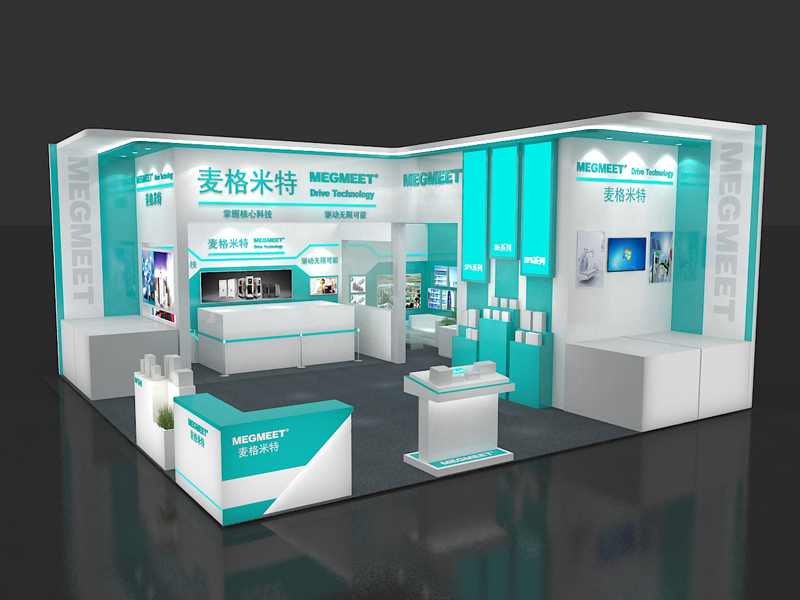 略帶夸張性的陳列方法,為突出重點展品,采用放大的模型、夸張的特寫照片(或燈箱片)等陳列于展臺上,更直觀的表達企業(yè)文化,使觀眾更便捷簡單的理解展臺及企業(yè)文化,從而促成貿(mào)易。