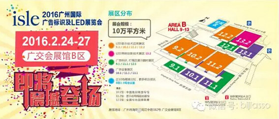 2016廣州國際廣告標識及LED展覽會(簡稱“ISLE”),由廣州交易會廣告有限公司及中國對外貿(mào)易廣州展覽總公司聯(lián)合主辦。千余家行業(yè)名企齊聚于此,展覽面積突破十萬平方米,展品范圍覆蓋LED顯示技術(shù)應(yīng)用、LED照明創(chuàng)新技術(shù)、廣告標識及展示器材、廣告標識設(shè)備應(yīng)用四大專業(yè)區(qū)域,共同打造優(yōu)質(zhì)“珠三角1小時LED 、廣告標識產(chǎn)業(yè)圈”平臺。