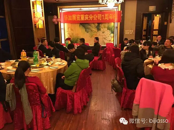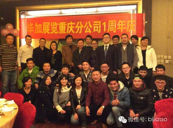 第一個是我們畢加展覽重慶分公司昨日成立一周年,重慶分公司在戴振凡戴總的領導下可算是傳奇,在短短一年的時間里一舉奪得分公司業(yè)績冠軍,獲得2015重慶展覽工程優(yōu)秀作品施工組織獎等等,戴總也獲得了由重慶展覽協(xié)會頒發(fā)的2015年度新秀人物獎,這是不平凡的一年,更是見證畢加重慶人努力的一年,我們希望重慶分公司小伙伴明年再接再厲,更上一層樓!