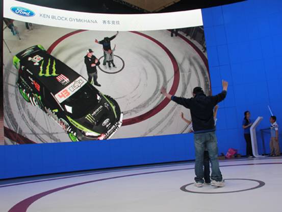 小編記得當(dāng)時(shí)整個(gè)展會(huì)中真正通過(guò)互動(dòng)性設(shè)計(jì)吸引觀眾參與并取得良好效果的還是寶馬MINI和福特的展位。