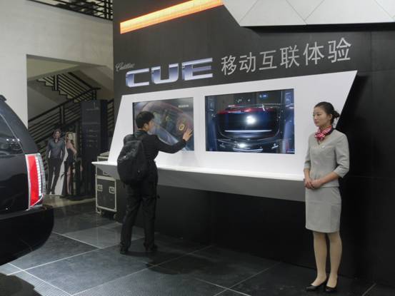作為競(jìng)爭(zhēng)對(duì)手,福特也不甘落后。福特的展位中有兩個(gè)互動(dòng)體驗(yàn)式設(shè)計(jì),一個(gè)是拍照打印區(qū),不同的是這里的拍照和打印是由工作人員輔助完成的,不如MINI展臺(tái)的自由,但是卻提高了利用率。另一個(gè)則是感應(yīng)技術(shù)的查詢臺(tái),觀眾只需要把手臂伸入感應(yīng)框內(nèi),就可控制透明顯示屏上的鼠標(biāo)進(jìn)行查詢操作。