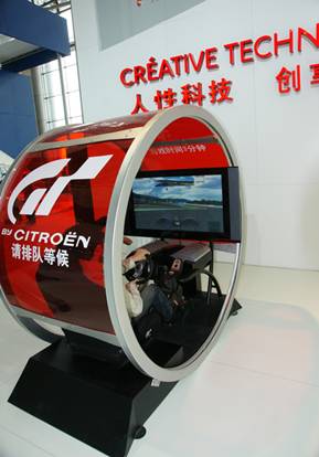 對(duì)于吸引觀眾進(jìn)入展臺(tái)參與互動(dòng)體驗(yàn),車(chē)展上各家參展商可謂八仙過(guò)海各顯神通。比較常見(jiàn)的方式是在現(xiàn)場(chǎng)放置駕駛模擬機(jī),不過(guò)其中也各不相同。有的展位放置的是一排駕駛模擬游戲機(jī),有的展位放置的是力反饋式的駕駛艙,有的是放上一輛車(chē)作為安全模擬駕駛器,最夸張的,是專(zhuān)門(mén)建了一個(gè)模擬駕駛機(jī)房。但是,這種互動(dòng)體驗(yàn)留給觀眾的印象只是一種游戲,與在游戲機(jī)房玩并無(wú)多大實(shí)質(zhì)差別,而且對(duì)駕駛游戲不感興趣的觀眾也未必會(huì)參與。